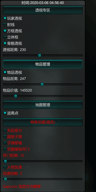 人物透视、物品透视、撤离点透视、显示距离、血量
