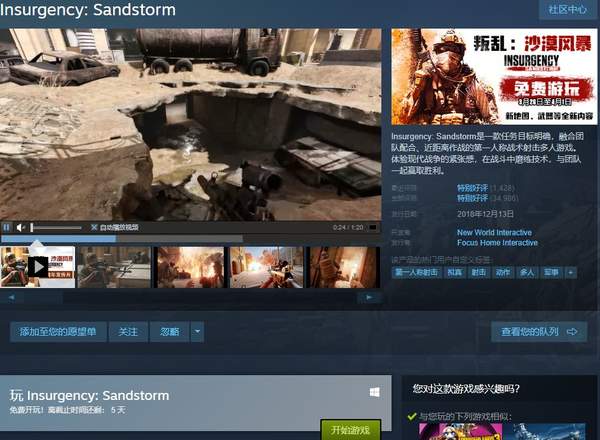 《叛乱:沙漠风暴(Insurgency: Sandstorm)》目前在Steam开启免费试玩,时间从3月26日持续至4月1日。同时游戏本体也进行半价销售,只要49元人民币。