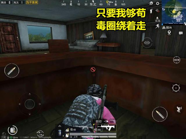 吃鸡地图非常大,里面有各式各样的建筑,所以只要你够苟,总能找到一个适合自己藏身的地方,它可能是一片茂密的草丛,它可能是屋檐下的雨棚,它可能是僵尸车的车兜,它可能是房间里的角落等等。上图所示,这位玩家找到了一个风水宝地,没想到房间里面竟然还有一个柜台,而玩家正好可以趴在柜台后面。安全区刷了一次又一次,玩家总是被刷在里面,正应了那句话-只要我够苟,毒圈绕着走。小伙伴们,你们在吃鸡游戏中有没有一些自己非常喜欢的藏身之地呢?欢迎在评论区分享您的“老窝”。