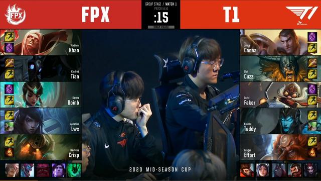 近一个月没有比赛大伙应该也无聊坏了。昨天就迎来了MSI取消后的替代比赛MSC,LPL的春季赛四强与LCK的春季赛四强混战决出冠军。而揭幕战就是一场重头戏:T1 vs FPX,两支战队都作为世界冠军,亮点自然是不少的。在这里,与大家分享一下我对于这场比赛的看法。