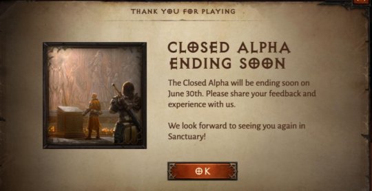 暴雪今天(6.29)发布公告,暗黑不朽的海外封闭技术测试将于6月30日结束。