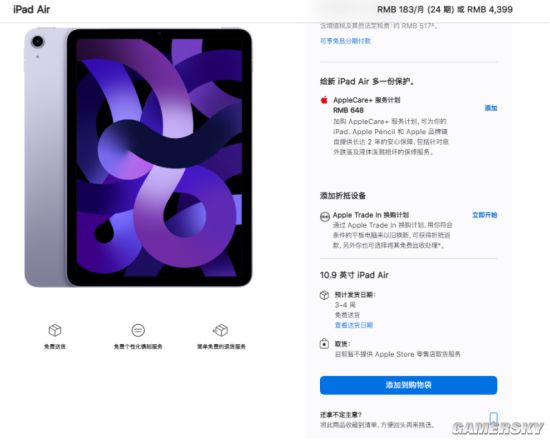 3月15日消息,据苹果官网显示,苹果于春季发布会上正式推出的新款iPad Air销售火爆,其预计交付时间达到了21至28天。