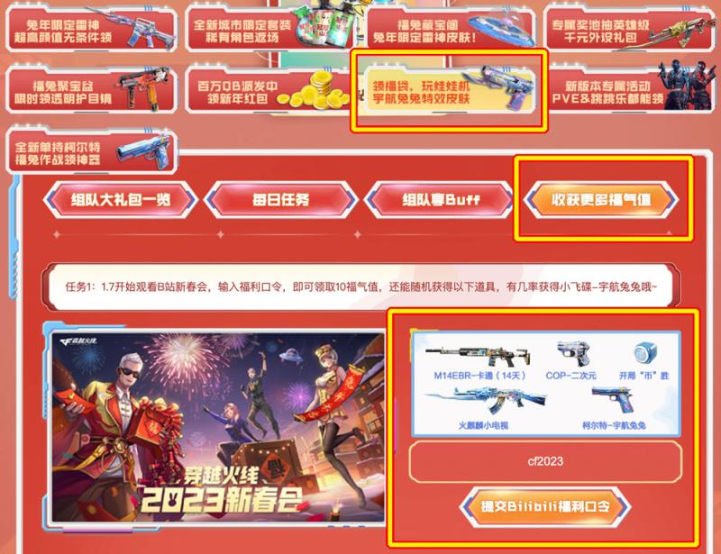 使用Bilibili福利口令、快手暗号、战队拜年码,可抽奖、获取福气值。