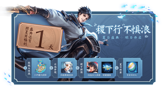 第四日:【抽取】夏日彩蛋活动来袭,有机会赢永久英雄/皮肤;英雄限免开启。
