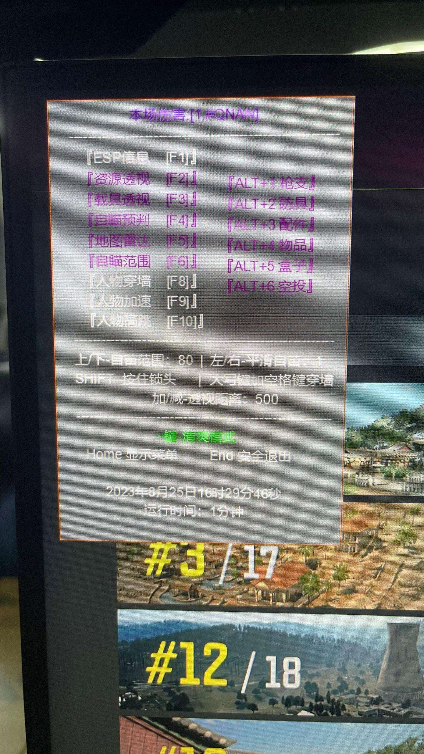 当前状态:正常使用【老牌项目回归】 直播状态: 确认时间:2023-08-30 更新内容: 稳定功能:透视自瞄全功能 + 支持扫车+ 扫飞机 +人物加速+超级高跳+人物穿墙 ---------------------------------- 周卡不在售后范围,推荐购买天卡 ---------------------------------- 游戏支持:游戏必须设置无边框!无边框! 系统支持:win7、win10、win11 开启步骤: 1:下载辅助并解压到桌面 2:管理员身份运行辅助 3:管理员身份运行steam 4:上游戏奔放 正常运行将在游戏大厅显示功能菜单。 使用过其他辅助的,安全起见请重做系统。 家庭用户开启一定要关闭杀毒再开