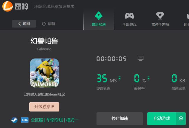 以上设置修改完成后,最后打开雷 神,辅助启动幻兽帕鲁,优化连接,然后就可以正常进入游戏,解决幻兽帕鲁卡加载、登陆闪退、崩溃报错。